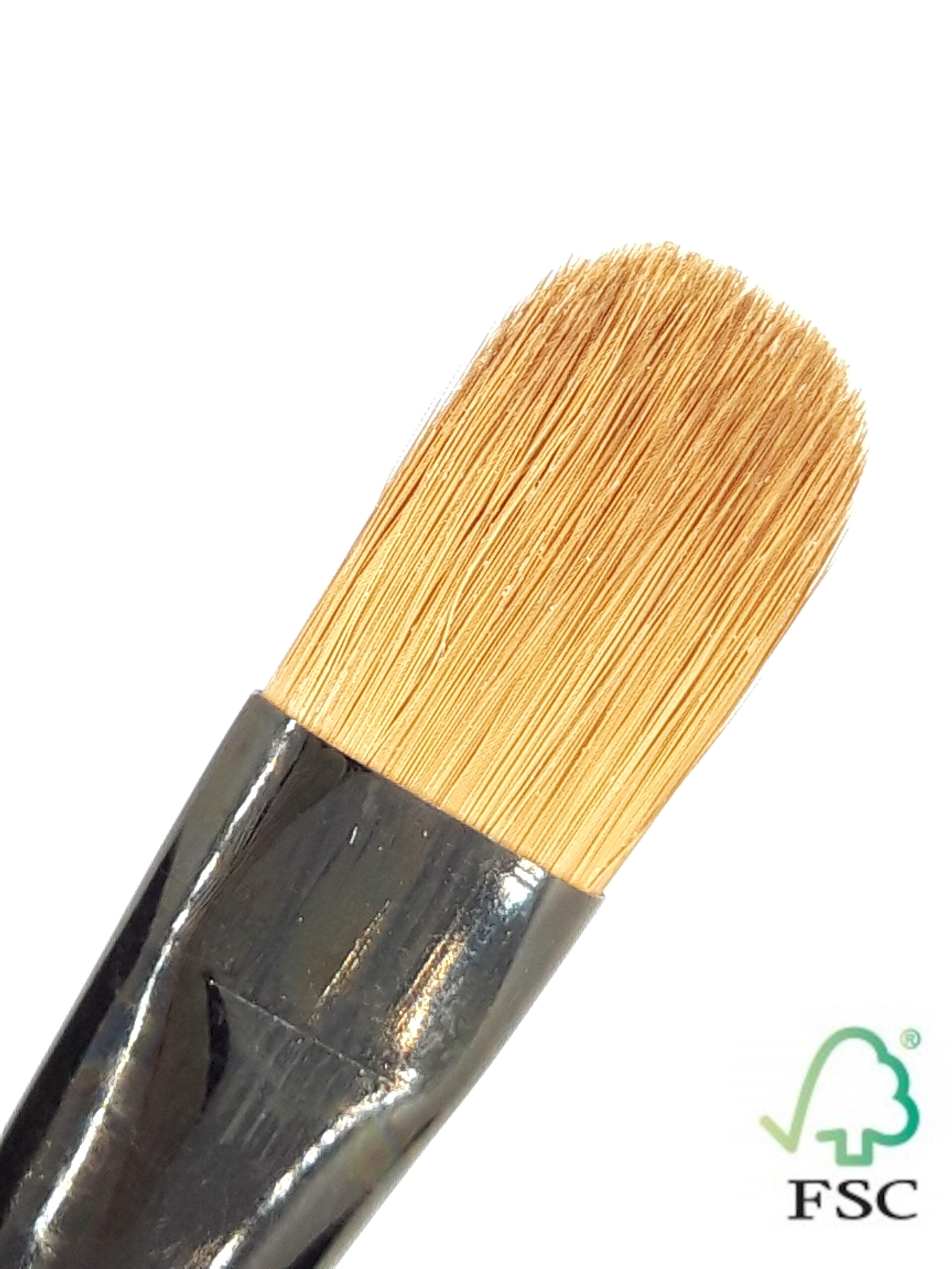 De forme plate à la pointe arrondie, doux et ferme à la fois, il est apprécié pour appliquer des ombres très pigmentées sur les paupières.